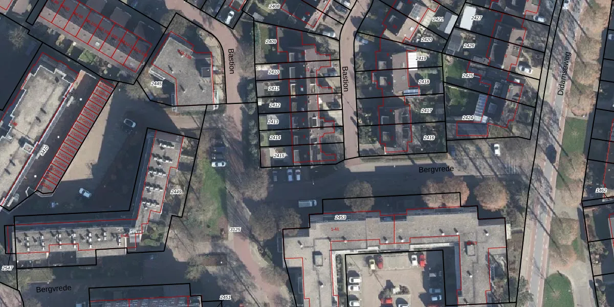 Gebruik de zoekbalk of klik op een perceel voor informatie over de adressen binnen dit perceel.