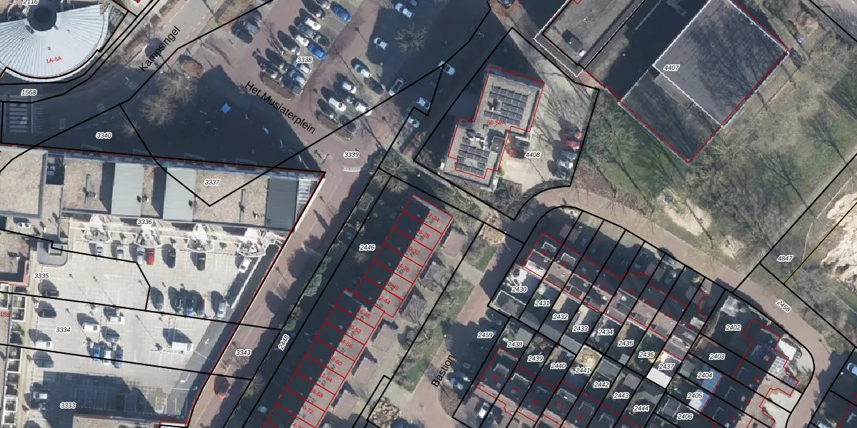 Het perceel waarop Bastion 24 staat heeft een oppervlakte van 2690 m². Dit is een zeer groot perceel. De perceeloppervlakte wordt geregistreerd door het Kadaster. Gedetailleerde informatie over de maten van dit perceel kunt u vinden in het rapport Kadastrale kaart met maatvoering van Bastion 24.