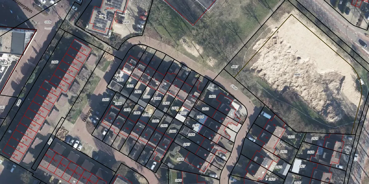 Gebruik de zoekbalk of klik op een perceel voor informatie over de adressen binnen dit perceel.