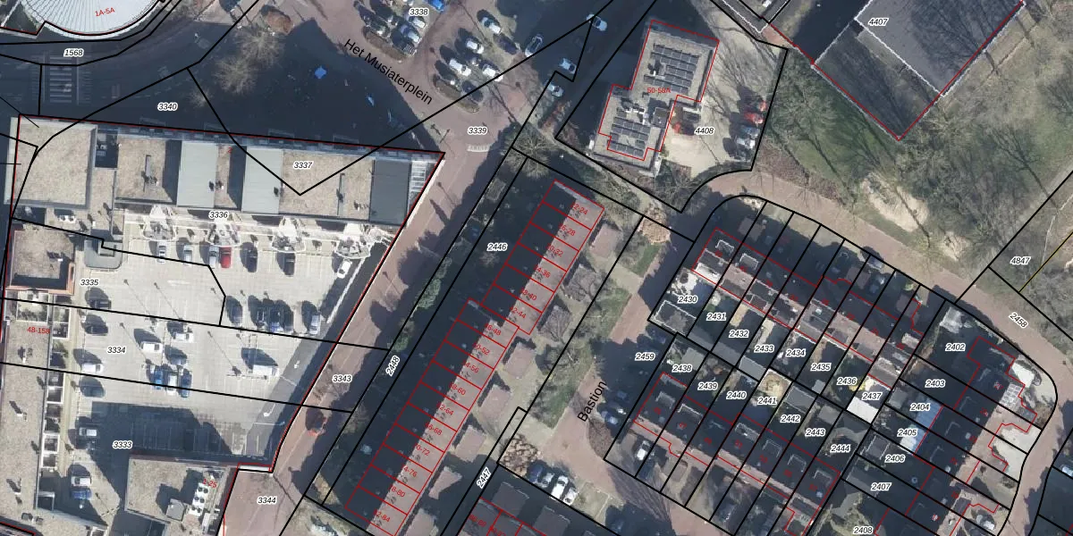 Het perceel waarop Bastion 34 staat heeft een oppervlakte van 2690 m². Dit is een zeer groot perceel. De perceeloppervlakte wordt geregistreerd door het Kadaster. Gedetailleerde informatie over de maten van dit perceel kunt u vinden in het rapport Kadastrale kaart met maatvoering van Bastion 34.