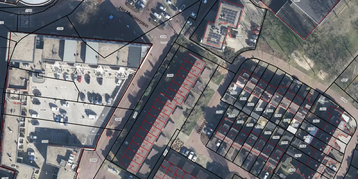 Het perceel waarop Bastion 40 staat heeft een oppervlakte van 2690 m². Dit is een zeer groot perceel. De perceeloppervlakte wordt geregistreerd door het Kadaster. Gedetailleerde informatie over de maten van dit perceel kunt u vinden in het rapport Kadastrale kaart met maatvoering van Bastion 40.