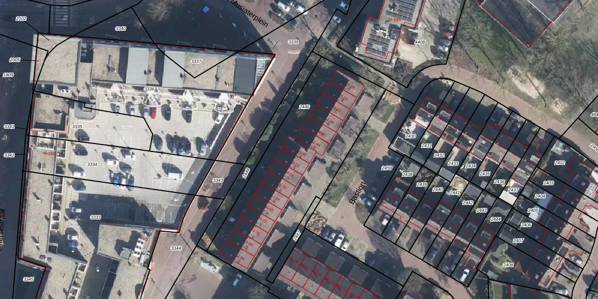 Het perceel waarop Bastion 48 staat heeft een oppervlakte van 2690 m². Dit is een zeer groot perceel. De perceeloppervlakte wordt geregistreerd door het Kadaster. Gedetailleerde informatie over de maten van dit perceel kunt u vinden in het rapport Kadastrale kaart met maatvoering van Bastion 48.