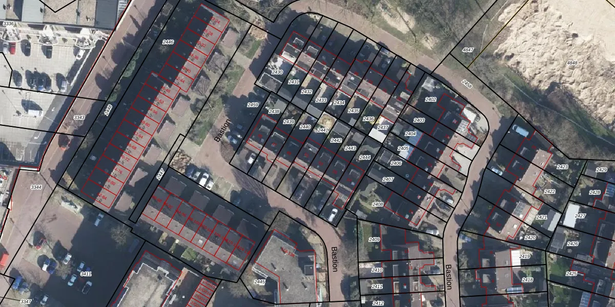 Het perceel waarop Bastion 51 staat heeft een oppervlakte van 166 m². Dit is een middelgroot perceel. De perceeloppervlakte wordt geregistreerd door het Kadaster. Gedetailleerde informatie over de maten van dit perceel kunt u vinden in het rapport Kadastrale kaart met maatvoering van Bastion 51.