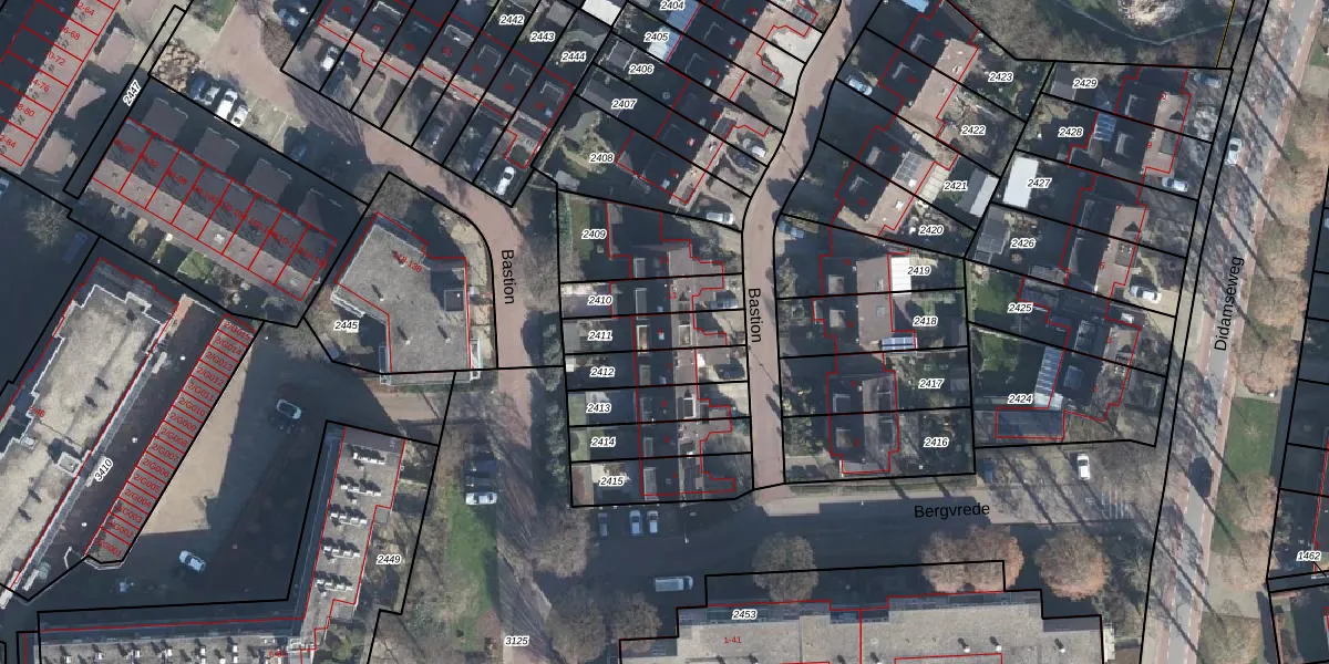 Gebruik de zoekbalk of klik op een perceel voor informatie over de adressen binnen dit perceel.