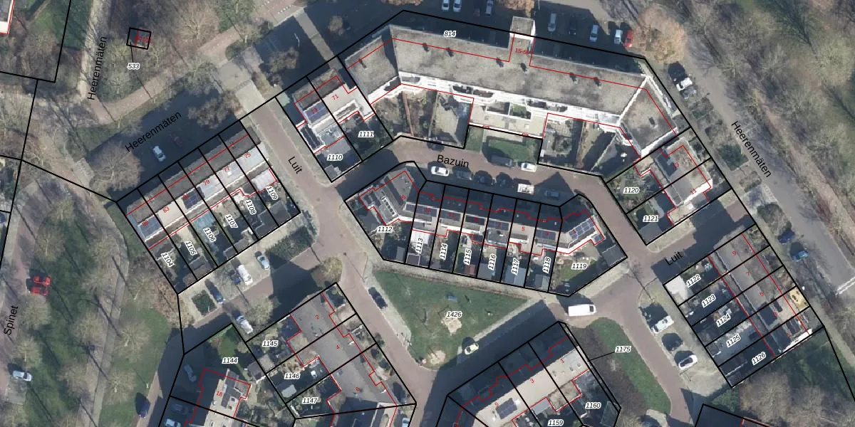 Het perceel waarop Bazuin 13 staat heeft een oppervlakte van 114 m². Dit is een middelgroot perceel. De perceeloppervlakte wordt geregistreerd door het Kadaster. Gedetailleerde informatie over de maten van dit perceel kunt u vinden in het rapport Kadastrale kaart met maatvoering van Bazuin 13.