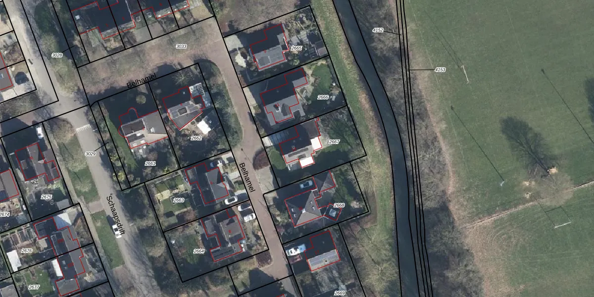 Het perceel waarop Belhamel 13 staat heeft een oppervlakte van 560 m². Dit is een groot perceel. De perceeloppervlakte wordt geregistreerd door het Kadaster. Gedetailleerde informatie over de maten van dit perceel kunt u vinden in het rapport Kadastrale kaart met maatvoering van Belhamel 13.