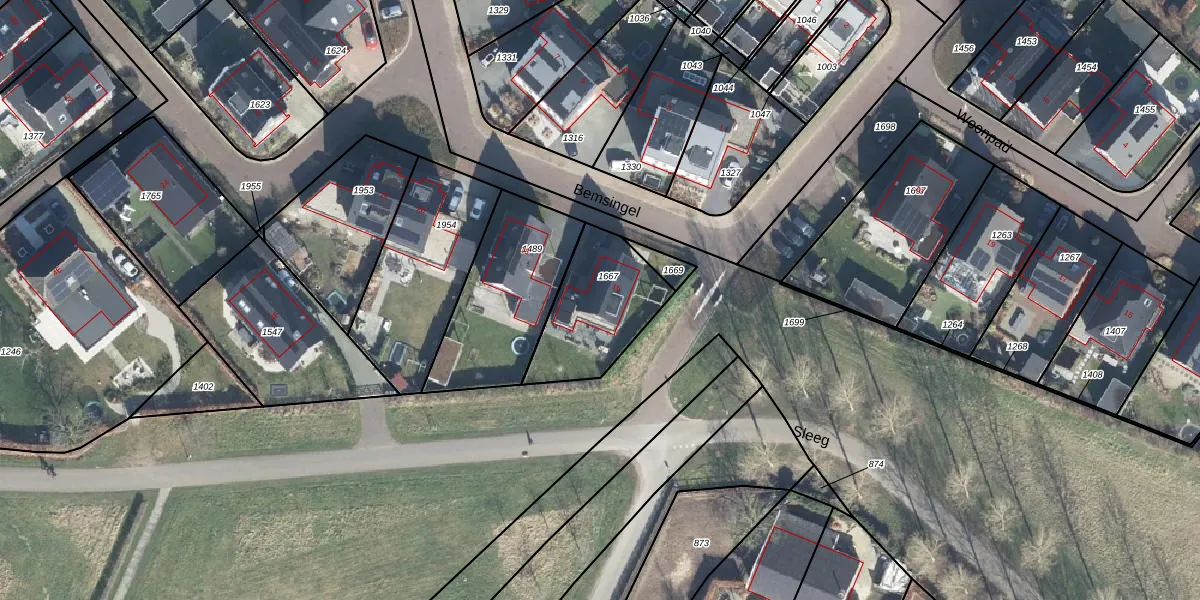 Het perceel waarop Bemsingel 16 staat heeft een oppervlakte van 369 m². Dit is een groot perceel. De perceeloppervlakte wordt geregistreerd door het Kadaster. Gedetailleerde informatie over de maten van dit perceel kunt u vinden in het rapport Kadastrale kaart met maatvoering van Bemsingel 16.