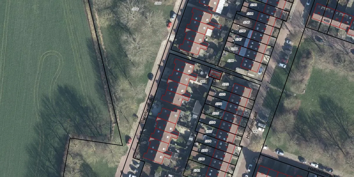 Het perceel waarop Beneluxstraat 14 staat heeft een oppervlakte van 3185 m². Dit is een zeer groot perceel. De perceeloppervlakte wordt geregistreerd door het Kadaster. Gedetailleerde informatie over de maten van dit perceel kunt u vinden in het rapport Kadastrale kaart met maatvoering van Beneluxstraat 14.