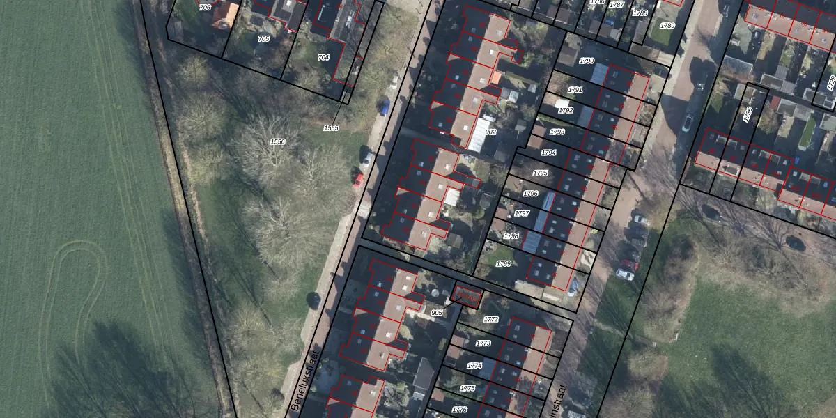 Het perceel waarop Beneluxstraat 22 staat heeft een oppervlakte van 1805 m². Dit is een zeer groot perceel. De perceeloppervlakte wordt geregistreerd door het Kadaster. Gedetailleerde informatie over de maten van dit perceel kunt u vinden in het rapport Kadastrale kaart met maatvoering van Beneluxstraat 22.