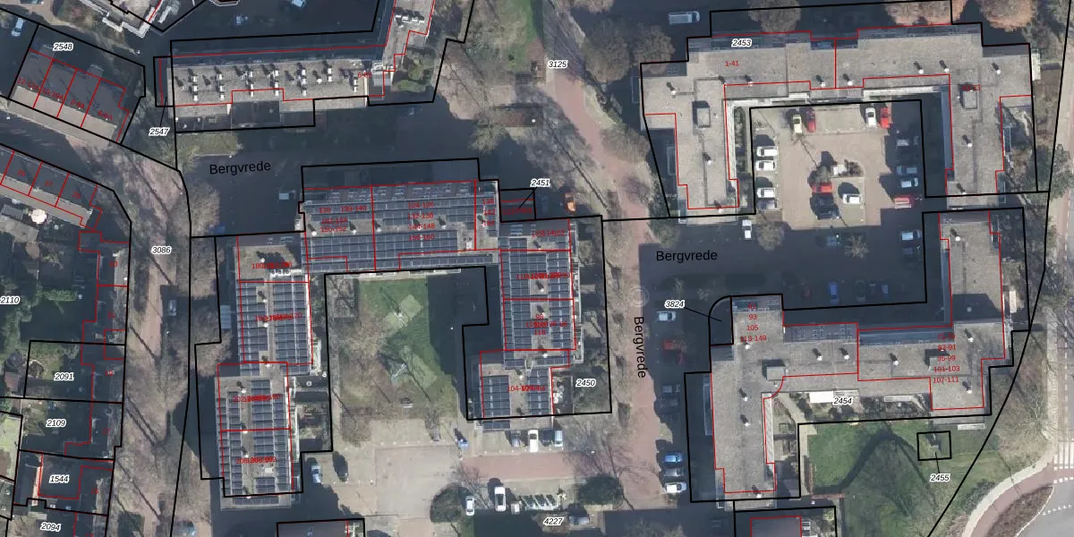 Het perceel waarop Bergvrede 112 staat heeft een oppervlakte van 2610 m². Dit is een zeer groot perceel. De perceeloppervlakte wordt geregistreerd door het Kadaster. Gedetailleerde informatie over de maten van dit perceel kunt u vinden in het rapport Kadastrale kaart met maatvoering van Bergvrede 112.