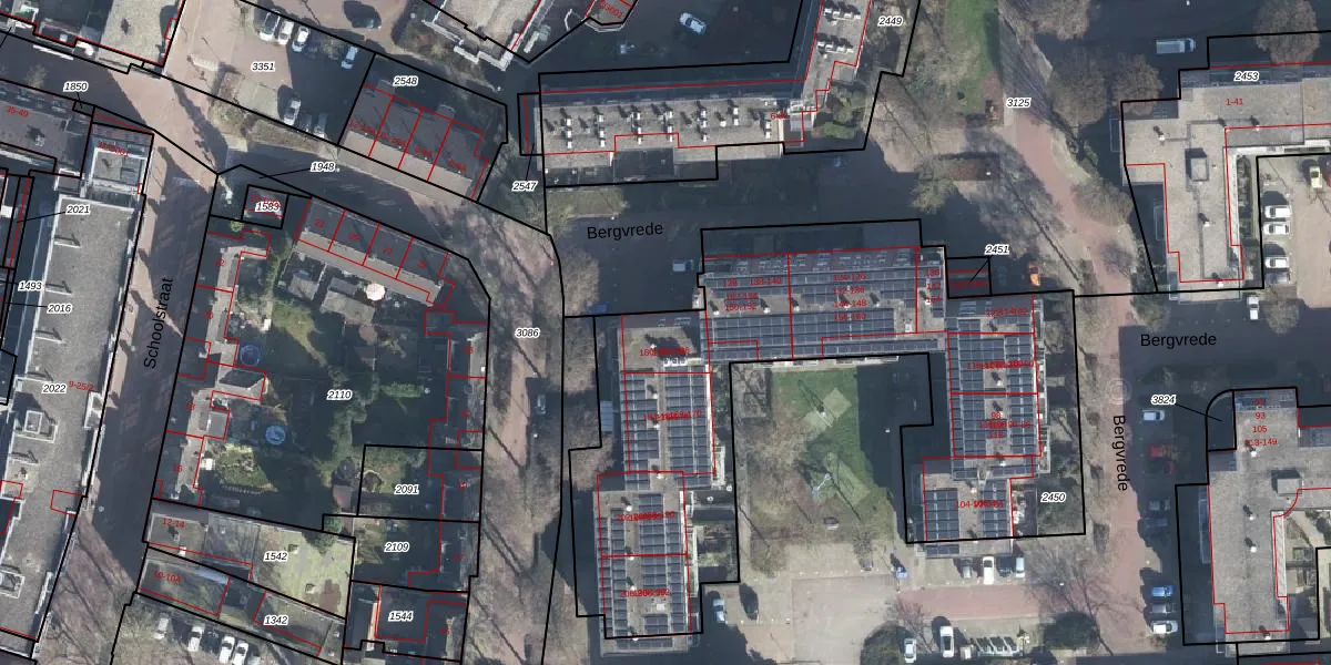 Het perceel waarop Bergvrede 180 staat heeft een oppervlakte van 2610 m². Dit is een zeer groot perceel. De perceeloppervlakte wordt geregistreerd door het Kadaster. Gedetailleerde informatie over de maten van dit perceel kunt u vinden in het rapport Kadastrale kaart met maatvoering van Bergvrede 180.