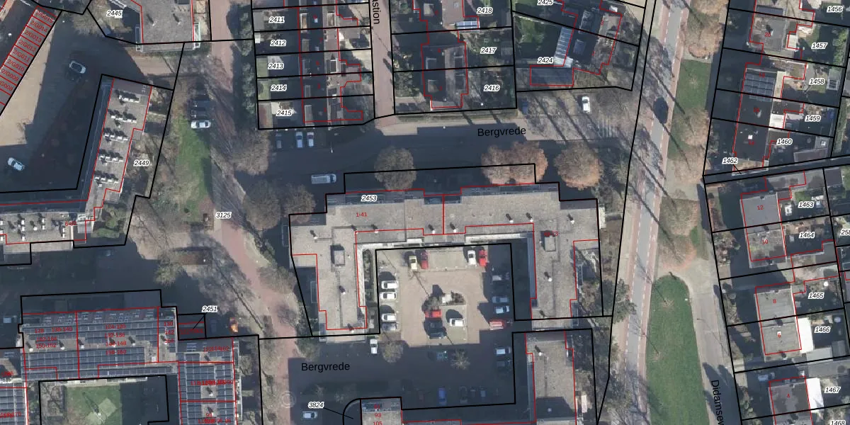 Het perceel waarop Bergvrede 19 staat heeft een oppervlakte van 1880 m². Dit is een zeer groot perceel. De perceeloppervlakte wordt geregistreerd door het Kadaster. Gedetailleerde informatie over de maten van dit perceel kunt u vinden in het rapport Kadastrale kaart met maatvoering van Bergvrede 19.