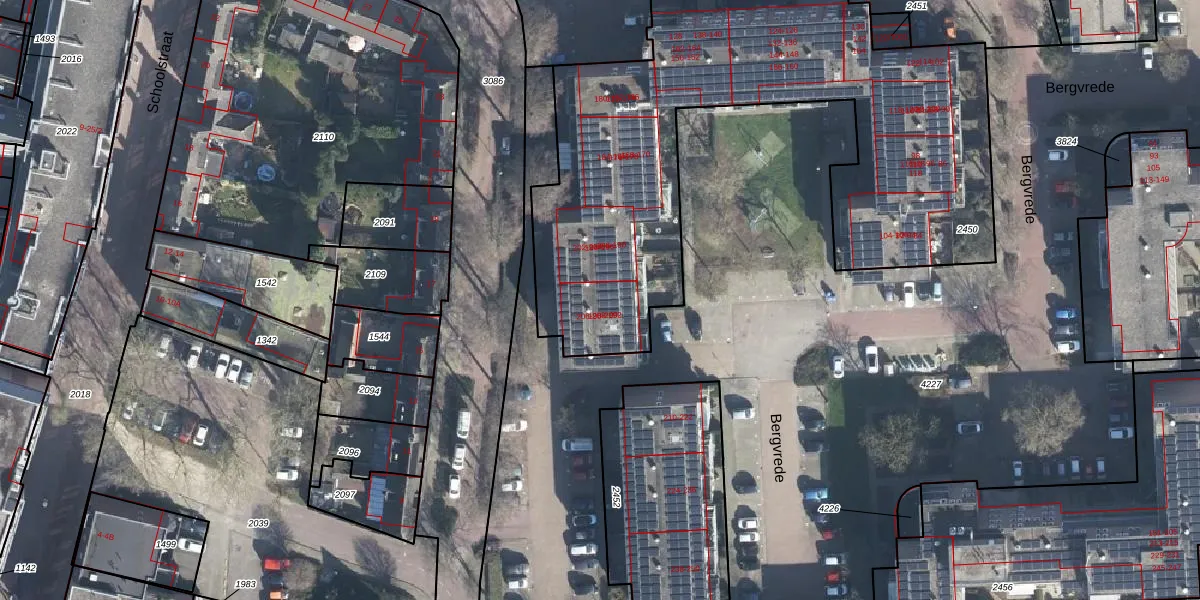 Het perceel waarop Bergvrede 198 staat heeft een oppervlakte van 2610 m². Dit is een zeer groot perceel. De perceeloppervlakte wordt geregistreerd door het Kadaster. Gedetailleerde informatie over de maten van dit perceel kunt u vinden in het rapport Kadastrale kaart met maatvoering van Bergvrede 198.