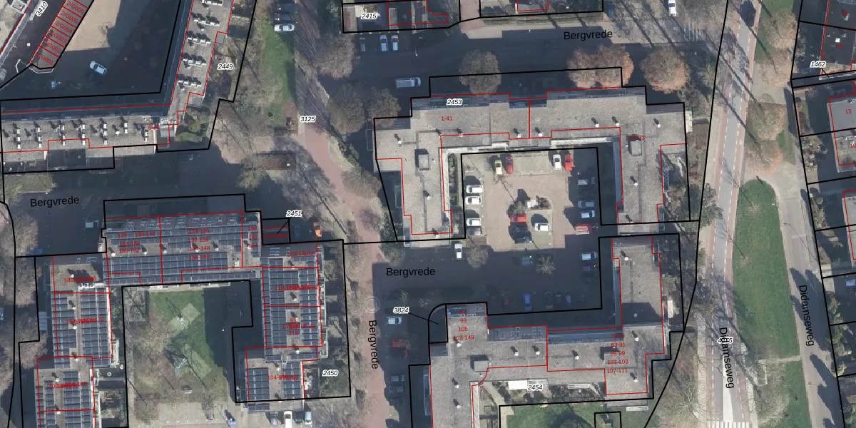 Het perceel waarop Bergvrede 21 staat heeft een oppervlakte van 1880 m². Dit is een zeer groot perceel. De perceeloppervlakte wordt geregistreerd door het Kadaster. Gedetailleerde informatie over de maten van dit perceel kunt u vinden in het rapport Kadastrale kaart met maatvoering van Bergvrede 21.