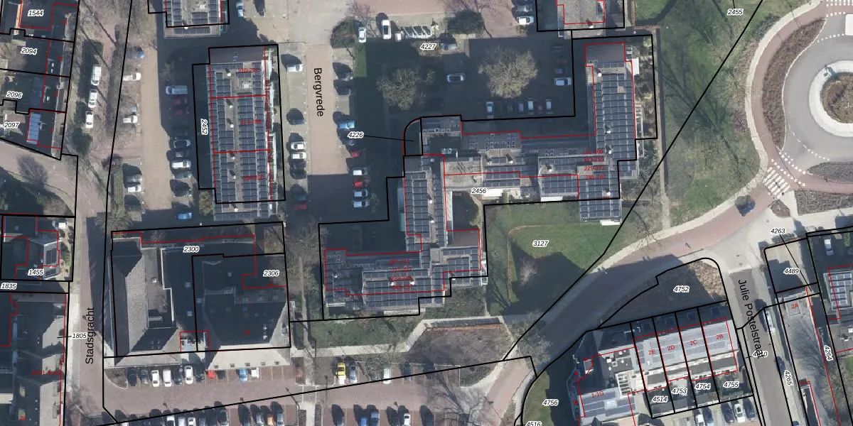 Het perceel waarop Bergvrede 219 staat heeft een oppervlakte van 2265 m². Dit is een zeer groot perceel. De perceeloppervlakte wordt geregistreerd door het Kadaster. Gedetailleerde informatie over de maten van dit perceel kunt u vinden in het rapport Kadastrale kaart met maatvoering van Bergvrede 219.