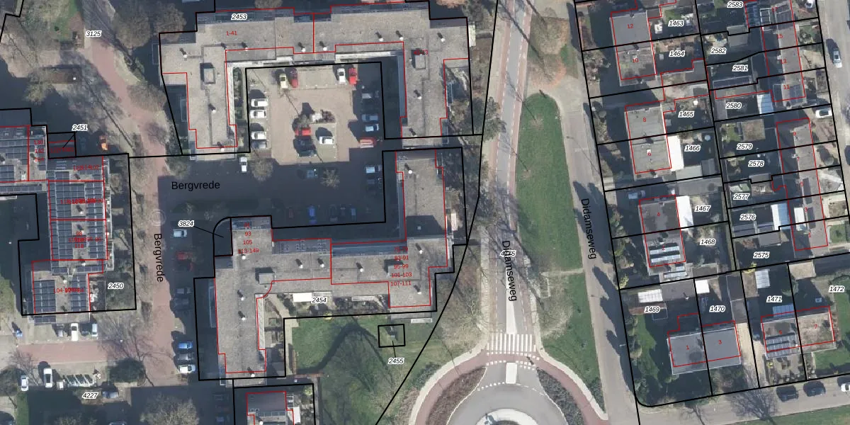 Het perceel waarop Bergvrede 77 staat heeft een oppervlakte van 1820 m². Dit is een zeer groot perceel. De perceeloppervlakte wordt geregistreerd door het Kadaster. Gedetailleerde informatie over de maten van dit perceel kunt u vinden in het rapport Kadastrale kaart met maatvoering van Bergvrede 77.