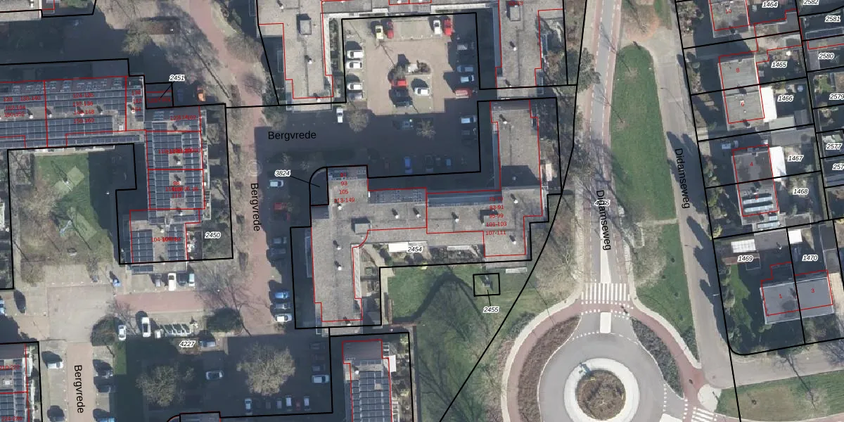 Het perceel waarop Bergvrede 93 staat heeft een oppervlakte van 1820 m². Dit is een zeer groot perceel. De perceeloppervlakte wordt geregistreerd door het Kadaster. Gedetailleerde informatie over de maten van dit perceel kunt u vinden in het rapport Kadastrale kaart met maatvoering van Bergvrede 93.