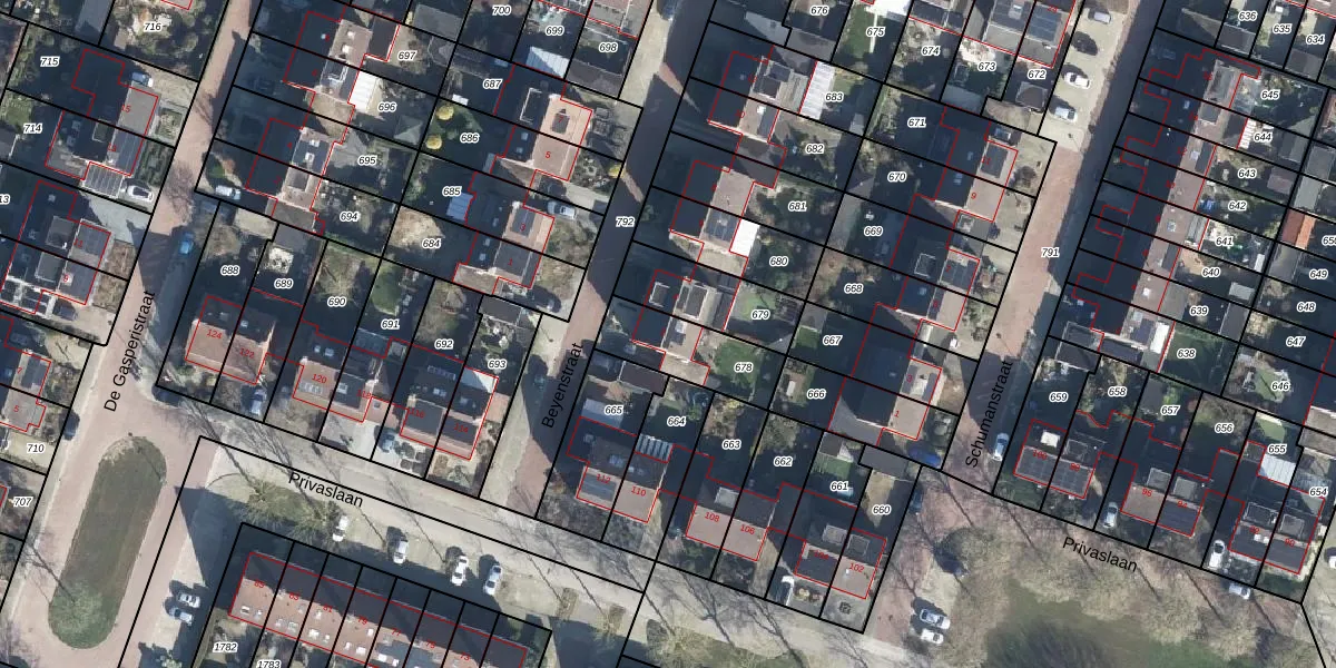 Gebruik de zoekbalk of klik op een perceel voor informatie over de adressen binnen dit perceel.