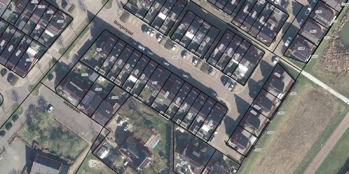 Het perceel waarop Bongertpad 37 staat heeft een oppervlakte van 209 m². Dit is een middelgroot perceel. De perceeloppervlakte wordt geregistreerd door het Kadaster. Gedetailleerde informatie over de maten van dit perceel kunt u vinden in het rapport Kadastrale kaart met maatvoering van Bongertpad 37.