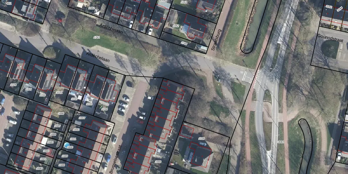 Het perceel waarop Brusselsestraat 1 staat heeft een oppervlakte van 1924 m². Dit is een zeer groot perceel. De perceeloppervlakte wordt geregistreerd door het Kadaster. Gedetailleerde informatie over de maten van dit perceel kunt u vinden in het rapport Kadastrale kaart met maatvoering van Brusselsestraat 1.