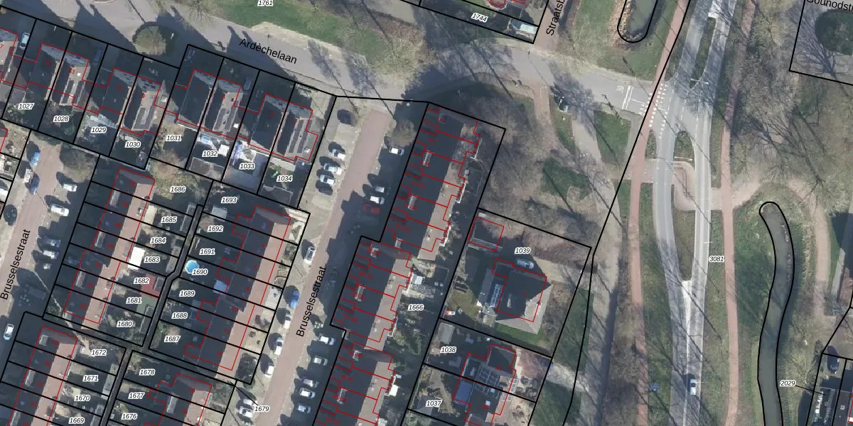 Het perceel waarop Brusselsestraat 19 staat heeft een oppervlakte van 1924 m². Dit is een zeer groot perceel. De perceeloppervlakte wordt geregistreerd door het Kadaster. Gedetailleerde informatie over de maten van dit perceel kunt u vinden in het rapport Kadastrale kaart met maatvoering van Brusselsestraat 19.