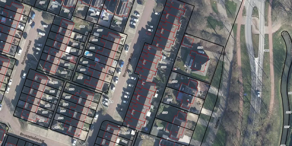 Het perceel waarop Brusselsestraat 37 staat heeft een oppervlakte van 1924 m². Dit is een zeer groot perceel. De perceeloppervlakte wordt geregistreerd door het Kadaster. Gedetailleerde informatie over de maten van dit perceel kunt u vinden in het rapport Kadastrale kaart met maatvoering van Brusselsestraat 37.