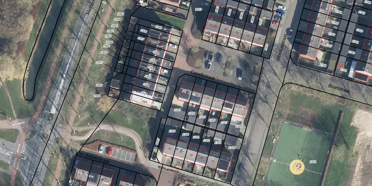 Het perceel waarop Corellistraat 22 staat heeft een oppervlakte van 224 m². Dit is een middelgroot perceel. De perceeloppervlakte wordt geregistreerd door het Kadaster. Gedetailleerde informatie over de maten van dit perceel kunt u vinden in het rapport Kadastrale kaart met maatvoering van Corellistraat 22.