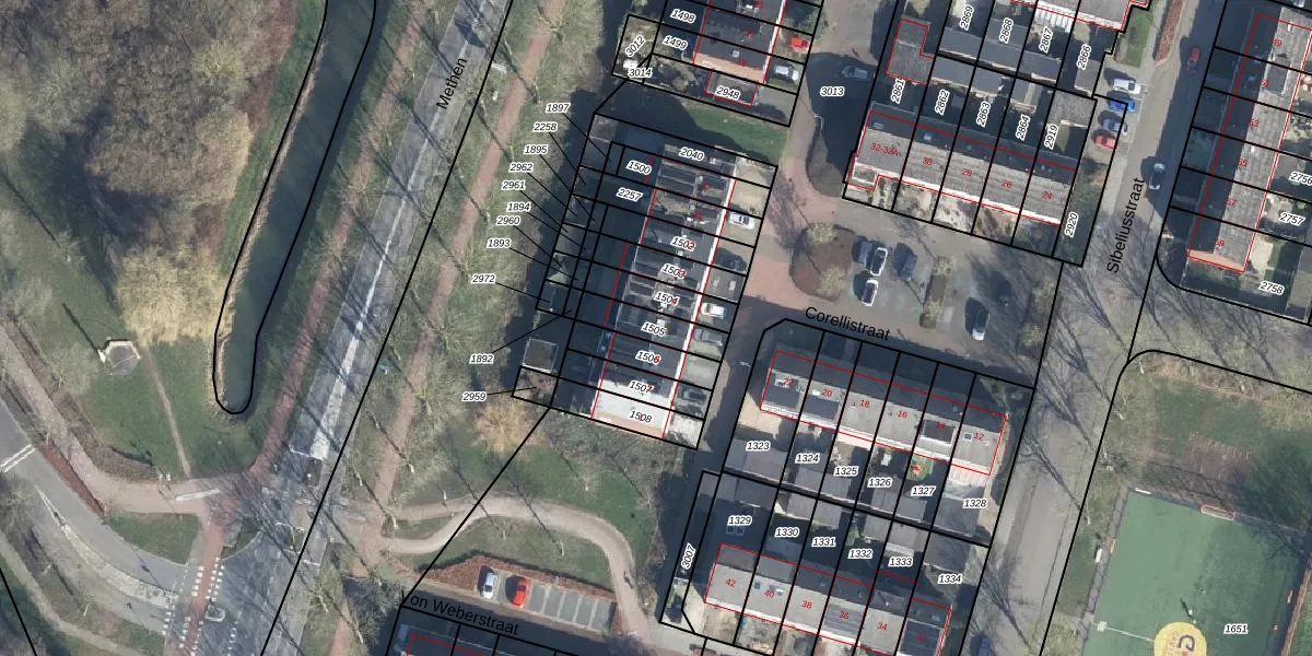 Het perceel waarop Corellistraat 7 staat heeft een oppervlakte van 106 m². Dit is een middelgroot perceel. De perceeloppervlakte wordt geregistreerd door het Kadaster. Gedetailleerde informatie over de maten van dit perceel kunt u vinden in het rapport Kadastrale kaart met maatvoering van Corellistraat 7.