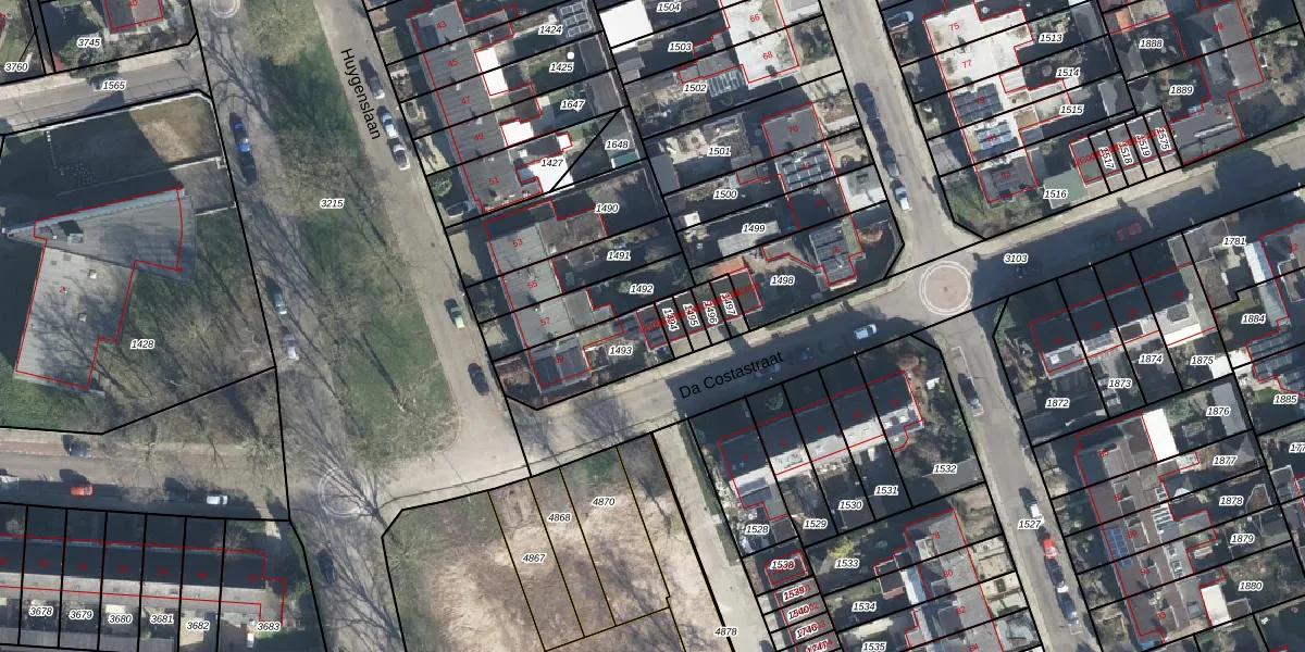 Da Costastraat 1-G001 is gelegen op kadastraal perceel ZVN02C1493. Deze kadastrale aanduiding is uniek en wordt gebruikt door het Kadaster om eigendomsrechten en andere zakelijke rechten vast te leggen. Het perceel maakt onderdeel uit van de kadastrale gemeente Oud-Zevenaar.