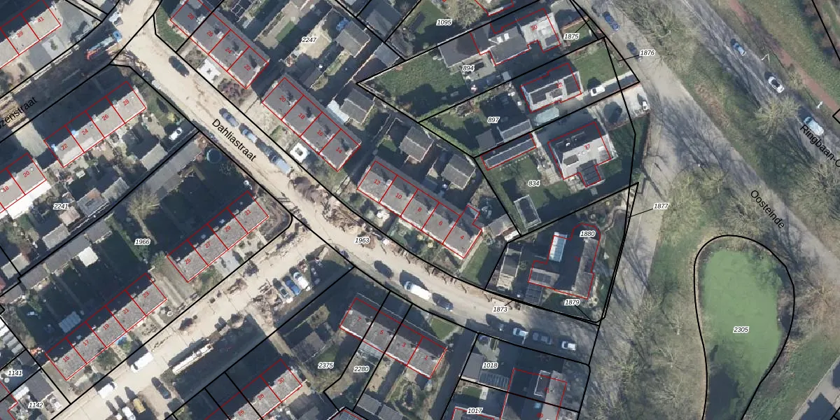 Het perceel waarop Dahliastraat 8 staat heeft een oppervlakte van 2627 m². Dit is een zeer groot perceel. De perceeloppervlakte wordt geregistreerd door het Kadaster. Gedetailleerde informatie over de maten van dit perceel kunt u vinden in het rapport Kadastrale kaart met maatvoering van Dahliastraat 8.