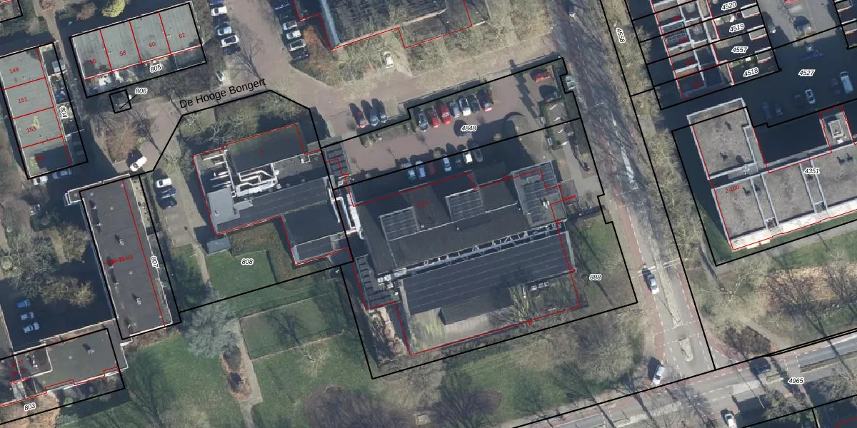 De Hooge Bongert 1-B is gelegen op kadastraal perceel ZVN02K888. Deze kadastrale aanduiding is uniek en wordt gebruikt door het Kadaster om eigendomsrechten en andere zakelijke rechten vast te leggen. Het perceel maakt onderdeel uit van de kadastrale gemeente Oud-Zevenaar.