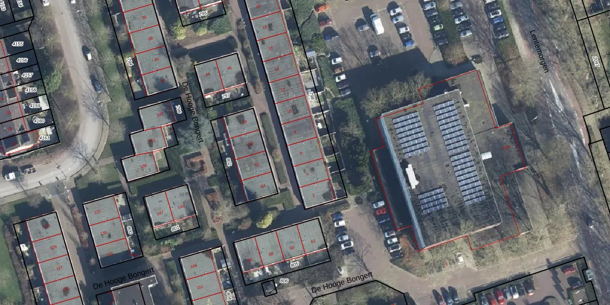Het perceel waarop De Hooge Bongert 6 staat heeft een oppervlakte van 1037 m². Dit is een zeer groot perceel. De perceeloppervlakte wordt geregistreerd door het Kadaster. Gedetailleerde informatie over de maten van dit perceel kunt u vinden in het rapport Kadastrale kaart met maatvoering van De Hooge Bongert 6.
