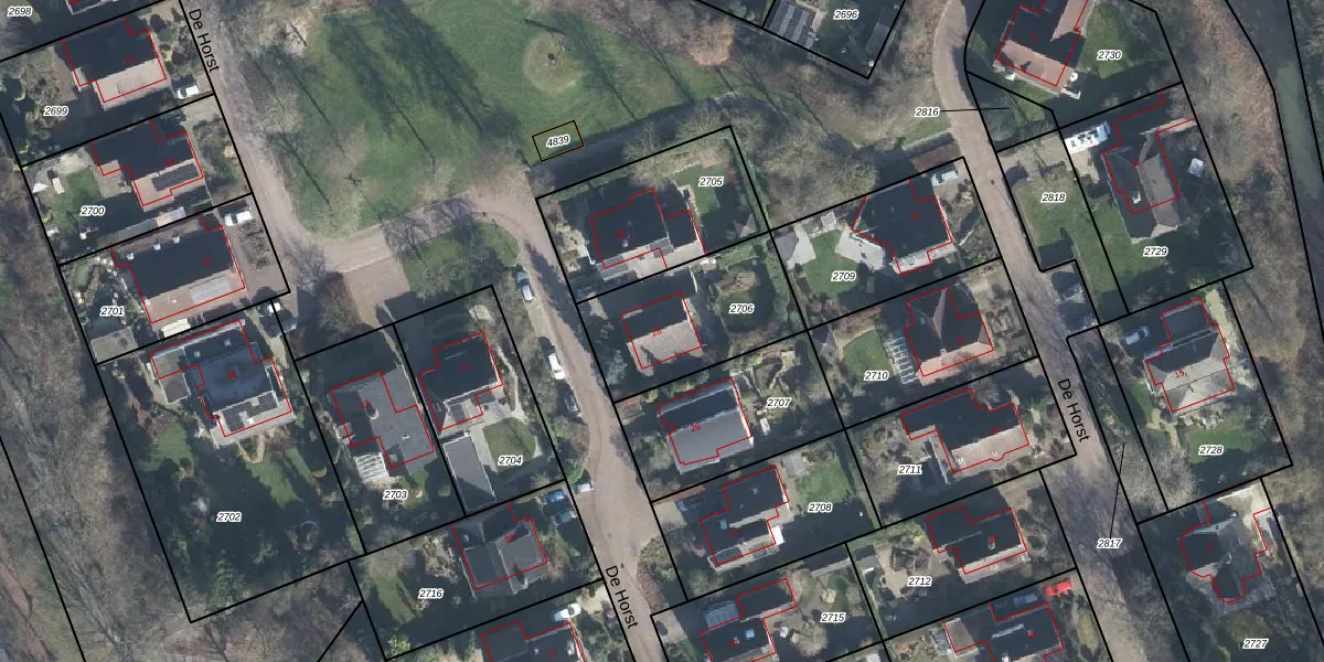 Het perceel waarop De Horst 28 staat heeft een oppervlakte van 500 m². Dit is een groot perceel. De perceeloppervlakte wordt geregistreerd door het Kadaster. Gedetailleerde informatie over de maten van dit perceel kunt u vinden in het rapport Kadastrale kaart met maatvoering van De Horst 28.