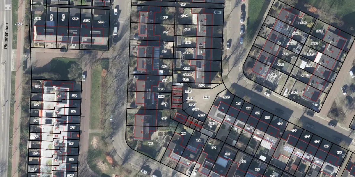 De Olmen 36-G001 is gelegen op kadastraal perceel ZVN02K3494. Deze kadastrale aanduiding is uniek en wordt gebruikt door het Kadaster om eigendomsrechten en andere zakelijke rechten vast te leggen. Het perceel maakt onderdeel uit van de kadastrale gemeente Oud-Zevenaar.