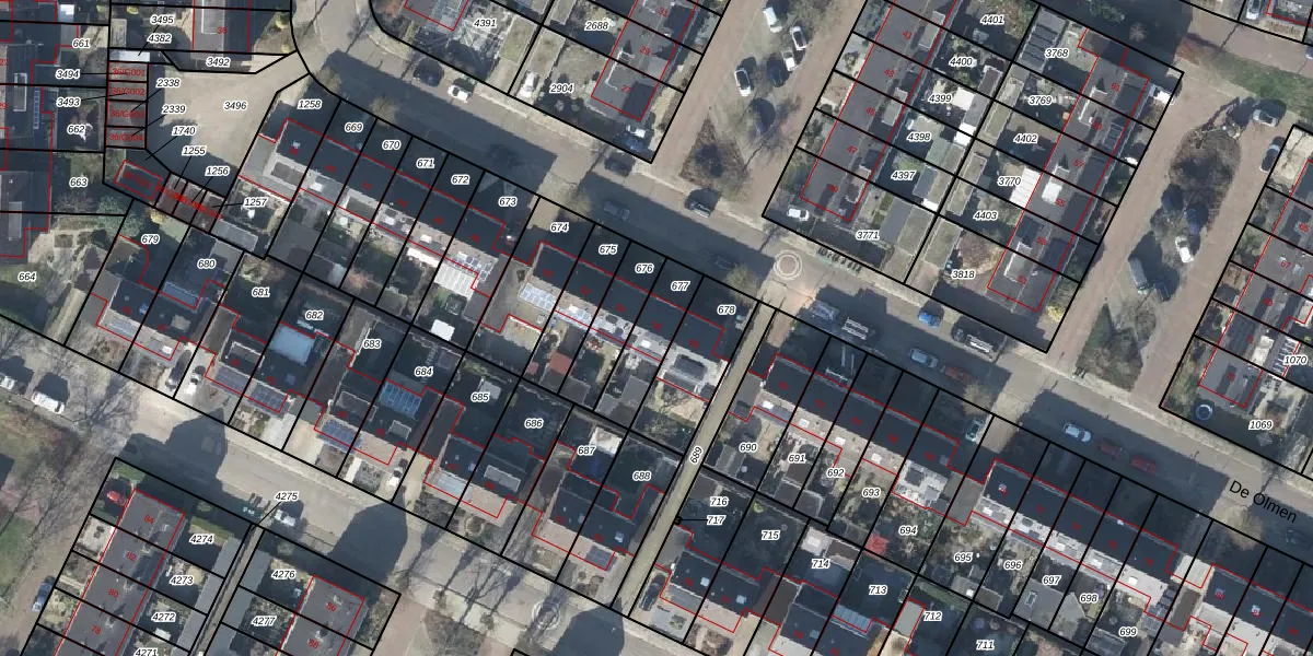 De Olmen 56 is gelegen op kadastraal perceel ZVN02K677. Deze kadastrale aanduiding is uniek en wordt gebruikt door het Kadaster om eigendomsrechten en andere zakelijke rechten vast te leggen. Het perceel maakt onderdeel uit van de kadastrale gemeente Oud-Zevenaar.