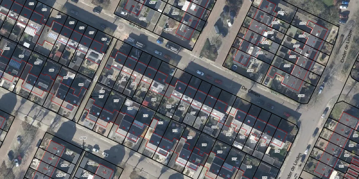 Het perceel waarop De Olmen 70 staat heeft een oppervlakte van 251 m². Dit is een middelgroot perceel. De perceeloppervlakte wordt geregistreerd door het Kadaster. Gedetailleerde informatie over de maten van dit perceel kunt u vinden in het rapport Kadastrale kaart met maatvoering van De Olmen 70.