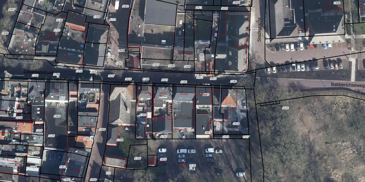 Het perceel waarop Didamsestraat 24 staat heeft een oppervlakte van 360 m². Dit is een groot perceel. De perceeloppervlakte wordt geregistreerd door het Kadaster. Gedetailleerde informatie over de maten van dit perceel kunt u vinden in het rapport Kadastrale kaart met maatvoering van Didamsestraat 24.