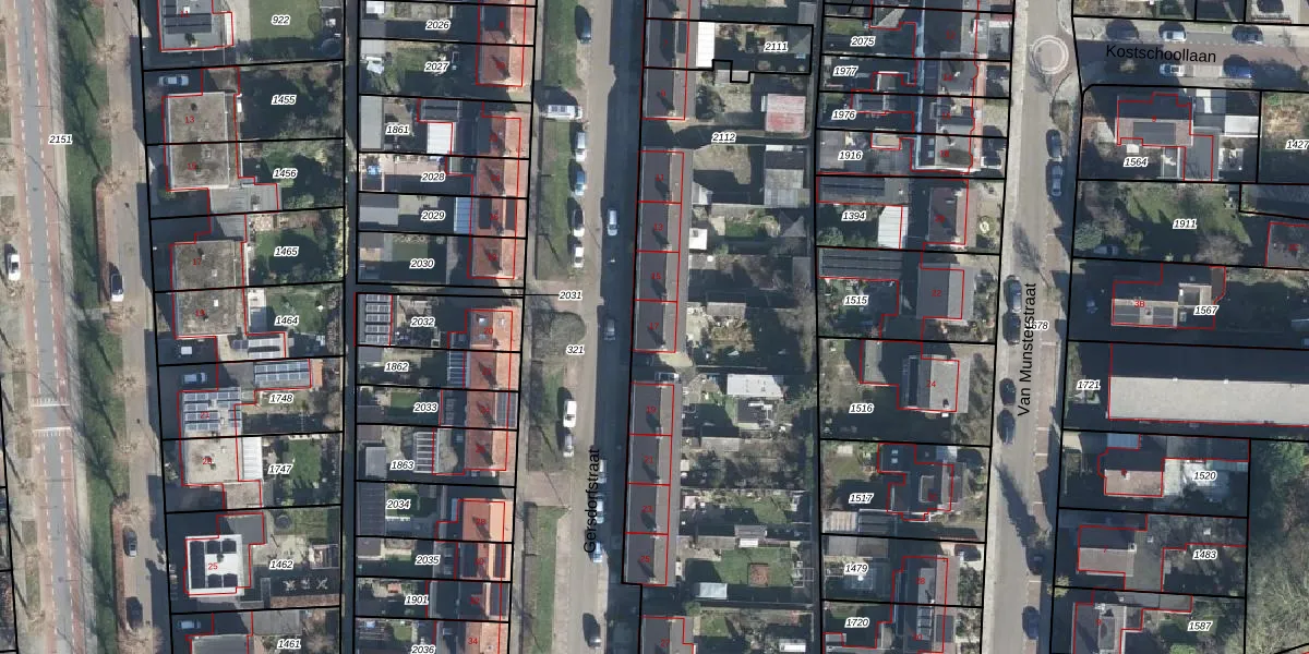Het perceel waarop Gersdorfstraat 17 staat heeft een oppervlakte van 3730 m². Dit is een zeer groot perceel. De perceeloppervlakte wordt geregistreerd door het Kadaster. Gedetailleerde informatie over de maten van dit perceel kunt u vinden in het rapport Kadastrale kaart met maatvoering van Gersdorfstraat 17.