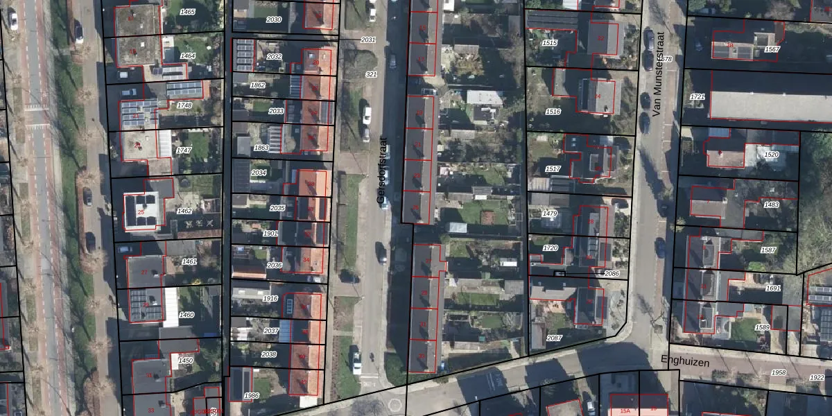 Het perceel waarop Gersdorfstraat 25 staat heeft een oppervlakte van 3730 m². Dit is een zeer groot perceel. De perceeloppervlakte wordt geregistreerd door het Kadaster. Gedetailleerde informatie over de maten van dit perceel kunt u vinden in het rapport Kadastrale kaart met maatvoering van Gersdorfstraat 25.