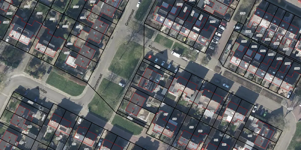 Het perceel waarop Grootmaat 47 staat heeft een oppervlakte van 218 m². Dit is een middelgroot perceel. De perceeloppervlakte wordt geregistreerd door het Kadaster. Gedetailleerde informatie over de maten van dit perceel kunt u vinden in het rapport Kadastrale kaart met maatvoering van Grootmaat 47.