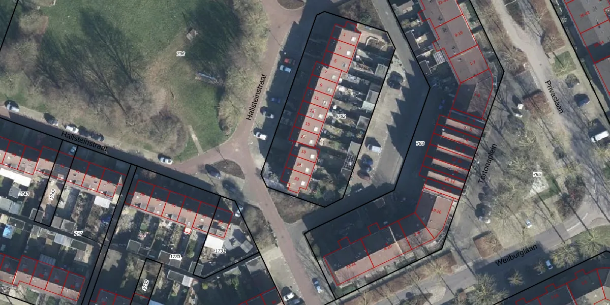 Het perceel waarop Hallsteinstraat 19 staat heeft een oppervlakte van 1672 m². Dit is een zeer groot perceel. De perceeloppervlakte wordt geregistreerd door het Kadaster. Gedetailleerde informatie over de maten van dit perceel kunt u vinden in het rapport Kadastrale kaart met maatvoering van Hallsteinstraat 19.