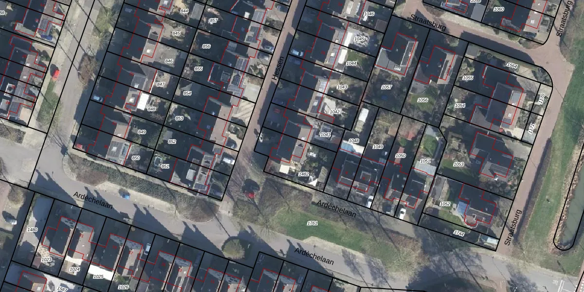 Het perceel waarop Hessen 2 staat heeft een oppervlakte van 359 m². Dit is een groot perceel. De perceeloppervlakte wordt geregistreerd door het Kadaster. Gedetailleerde informatie over de maten van dit perceel kunt u vinden in het rapport Kadastrale kaart met maatvoering van Hessen 2.