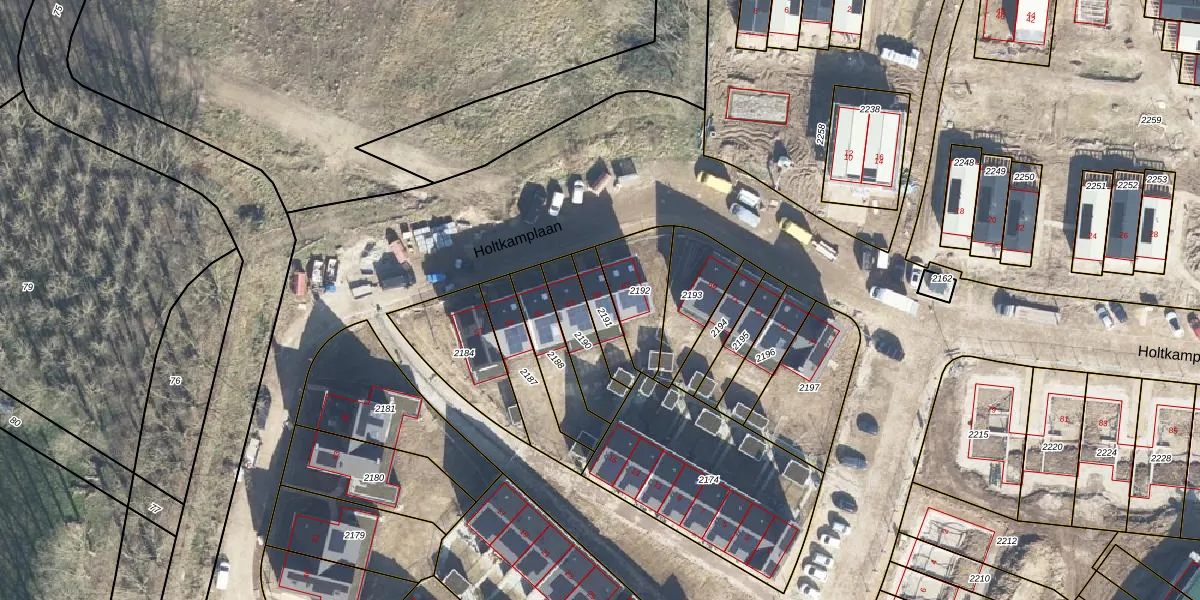 Het perceel waarop Holtkamplaan 65 staat heeft een oppervlakte van 99 m². Dit is een klein perceel. De perceeloppervlakte wordt geregistreerd door het Kadaster. Gedetailleerde informatie over de maten van dit perceel kunt u vinden in het rapport Kadastrale kaart met maatvoering van Holtkamplaan 65.