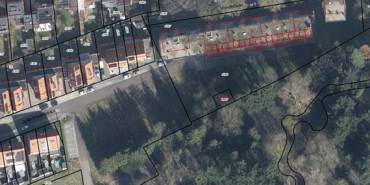 Julie Postelstraat 24 is gelegen op kadastraal perceel ZVN02C4288. Deze kadastrale aanduiding is uniek en wordt gebruikt door het Kadaster om eigendomsrechten en andere zakelijke rechten vast te leggen. Het perceel maakt onderdeel uit van de kadastrale gemeente Oud-Zevenaar.
