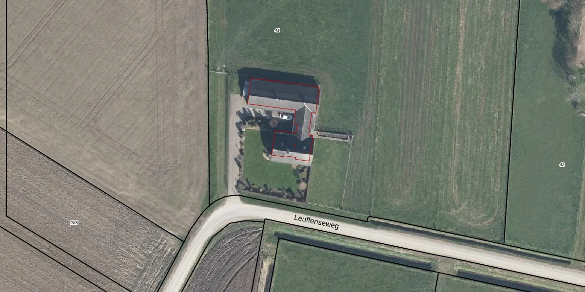Het perceel waarop Leuffenseweg 4 staat heeft een oppervlakte van 1,0 ha. Dit is een zeer groot perceel. De perceeloppervlakte wordt geregistreerd door het Kadaster. Gedetailleerde informatie over de maten van dit perceel kunt u vinden in het rapport Kadastrale kaart met maatvoering van Leuffenseweg 4.