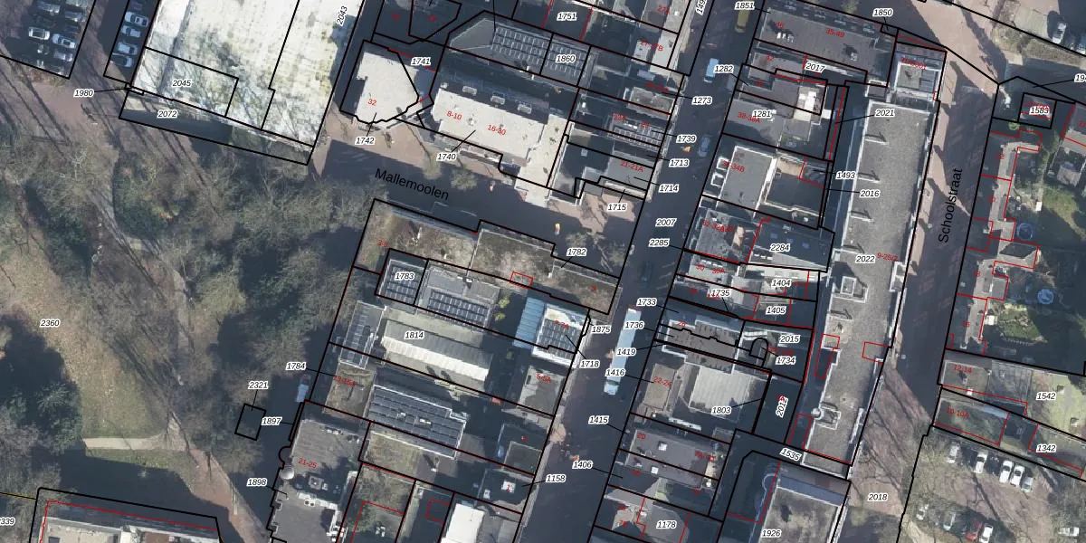 Het perceel waarop Mallemoolen 9 staat heeft een oppervlakte van 410 m². Dit is een groot perceel. De perceeloppervlakte wordt geregistreerd door het Kadaster. Gedetailleerde informatie over de maten van dit perceel kunt u vinden in het rapport Kadastrale kaart met maatvoering van Mallemoolen 9.