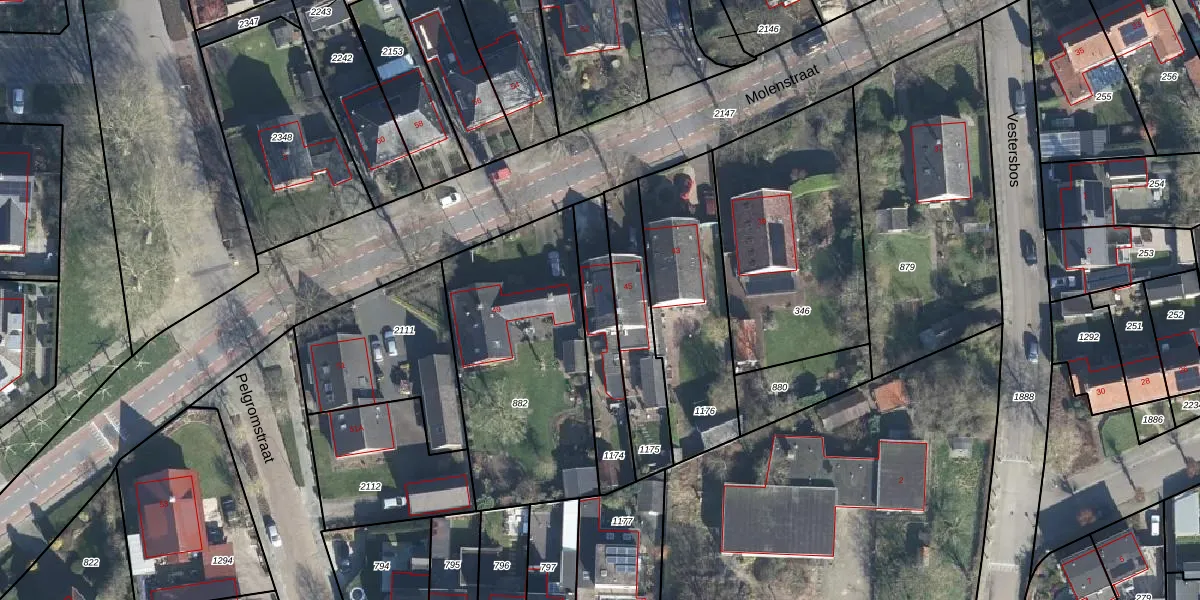 Het perceel waarop Molenstraat 47 staat heeft een oppervlakte van 258 m². Dit is een middelgroot perceel. De perceeloppervlakte wordt geregistreerd door het Kadaster. Gedetailleerde informatie over de maten van dit perceel kunt u vinden in het rapport Kadastrale kaart met maatvoering van Molenstraat 47.