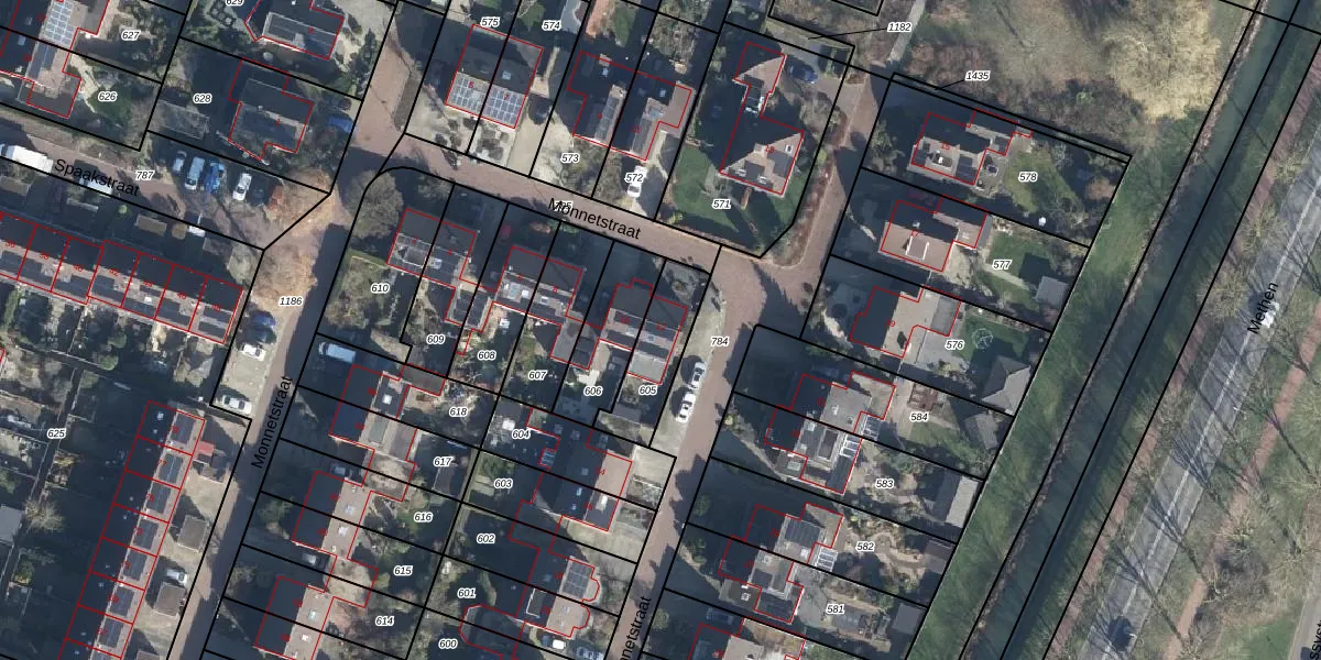 Het perceel waarop Monnetstraat 12 staat heeft een oppervlakte van 206 m². Dit is een middelgroot perceel. De perceeloppervlakte wordt geregistreerd door het Kadaster. Gedetailleerde informatie over de maten van dit perceel kunt u vinden in het rapport Kadastrale kaart met maatvoering van Monnetstraat 12.