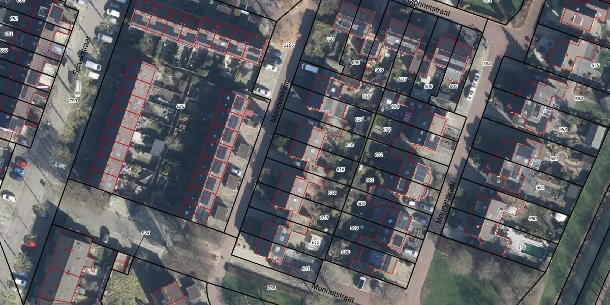Monnetstraat 60 is gelegen op kadastraal perceel ZVN02G615. Deze kadastrale aanduiding is uniek en wordt gebruikt door het Kadaster om eigendomsrechten en andere zakelijke rechten vast te leggen. Het perceel maakt onderdeel uit van de kadastrale gemeente Oud-Zevenaar.