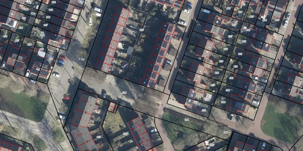 Monnetstraat 67 is gelegen op kadastraal perceel ZVN02G625. Deze kadastrale aanduiding is uniek en wordt gebruikt door het Kadaster om eigendomsrechten en andere zakelijke rechten vast te leggen. Het perceel maakt onderdeel uit van de kadastrale gemeente Oud-Zevenaar.